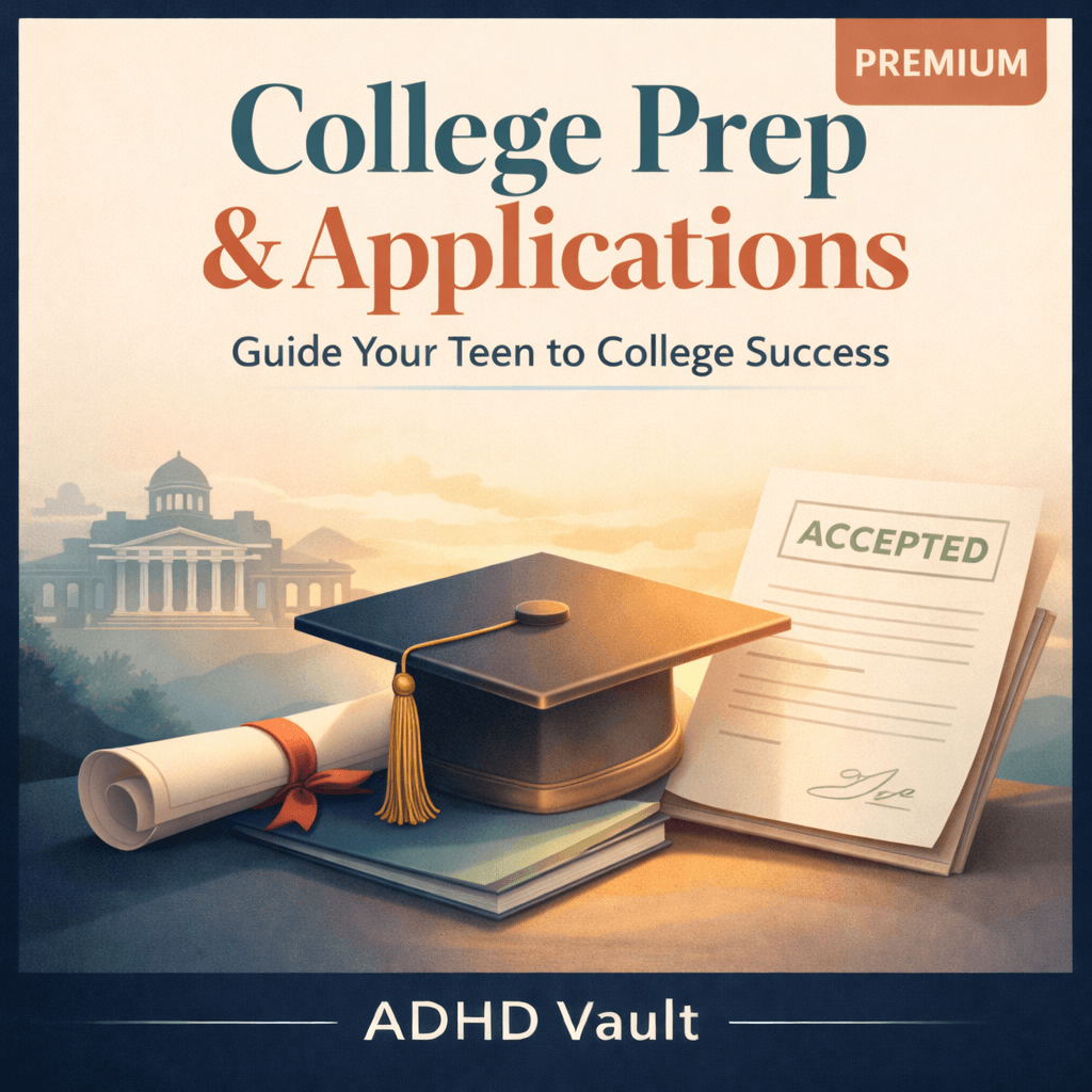 College applications are stressful for any family, but ADHD adds extra challenges. This premium audiobook gives you a complete roadmap — from building the college list to transition support after acceptance.
