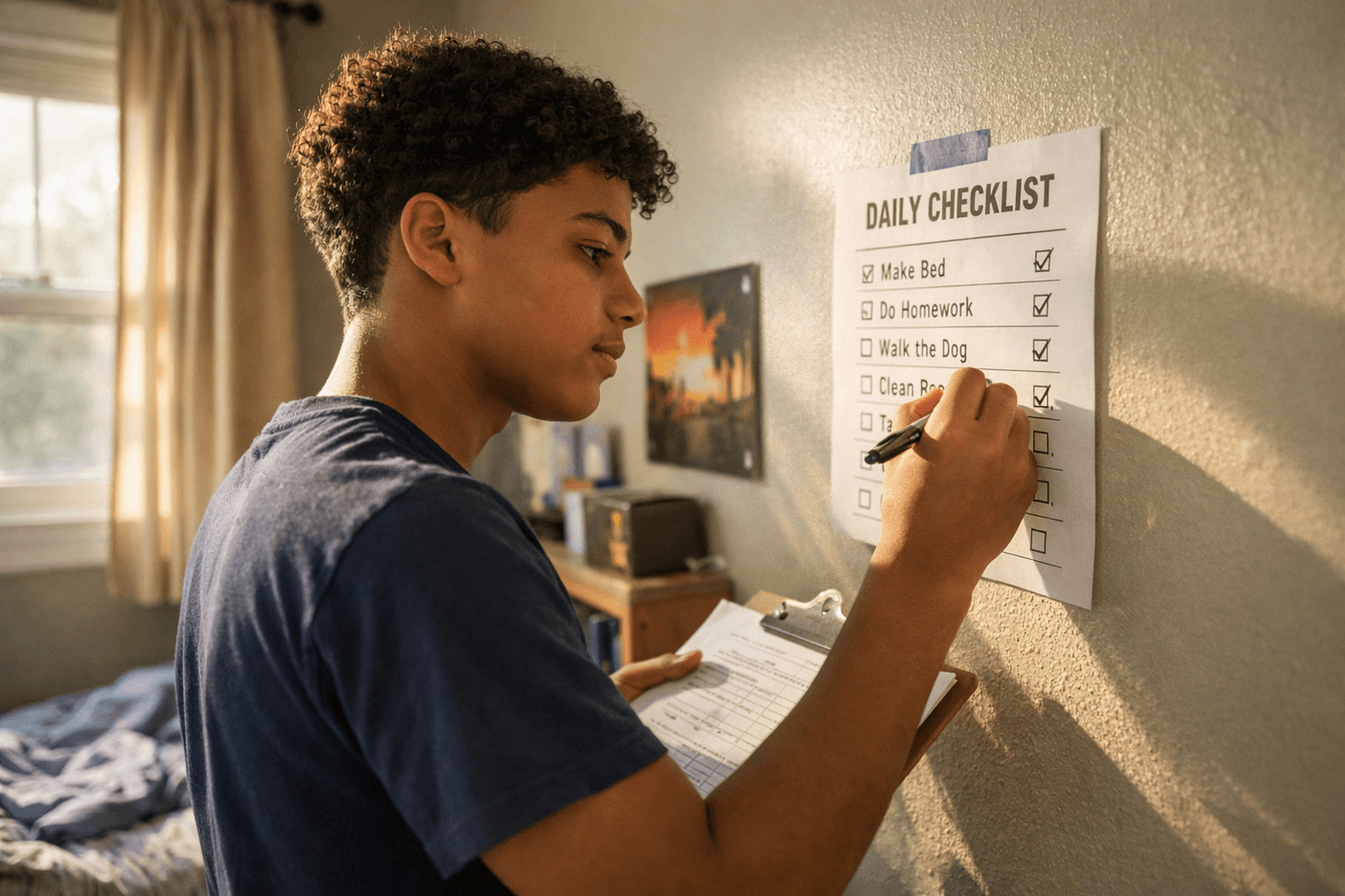 The chart does not replace you entirely — you may still need to prompt your teen to check the chart. But prompting your teen to check the chart is fundamentally different from prompting them to do each task. One prompt that hands responsibility to a system versus six prompts that maintain you as the enforcer.